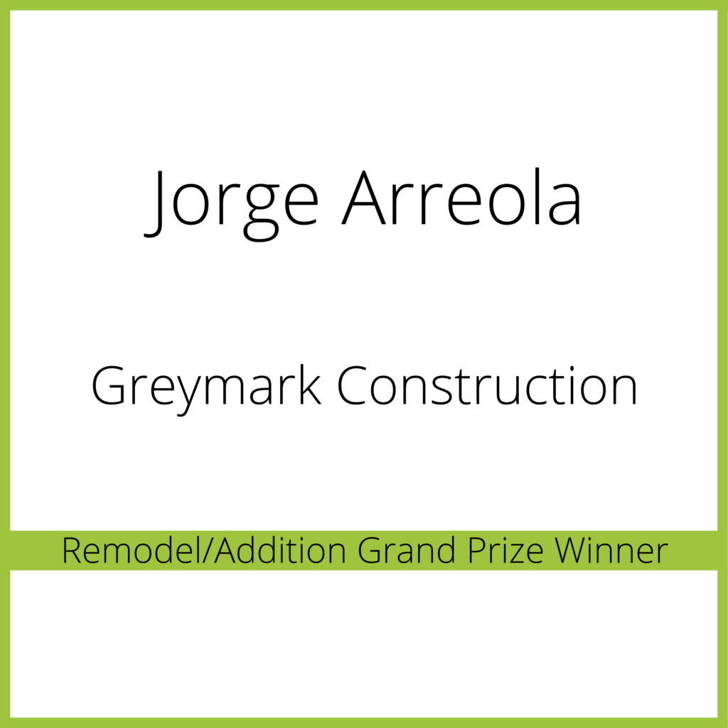 Jorge Arreola of Greymark Design + Build helped his customer update an outdated kitchen. The existing space was small and isolated from the rest of the house. After organizing his client’s priorities, Jorge found the solution with his winning design, an open-concept kitchen, and connected dining and living spaces.